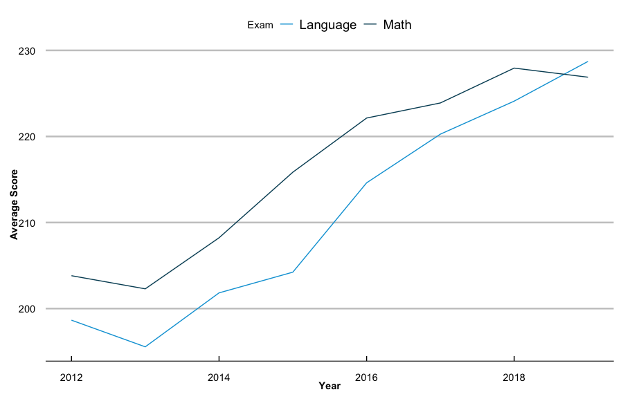 The SPAECE contains standardized Math and Portuguese test scores - it is an average at the school level