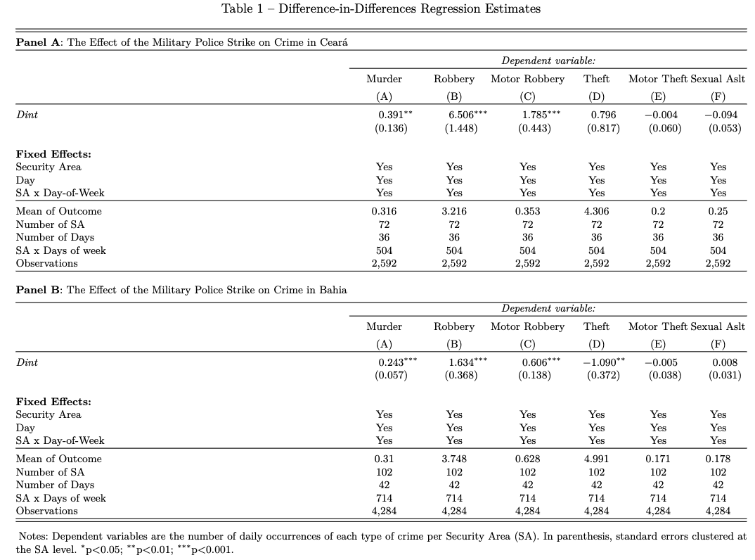 I focus on the Brazilian Northeast from 2011 to 2012. During this period, the Military Police went on a strike in six different states (mainly in the Northeast region). Sizable walkouts occurred in Maranhão (10 days), Ceará (6 days), and Bahia (12 days)