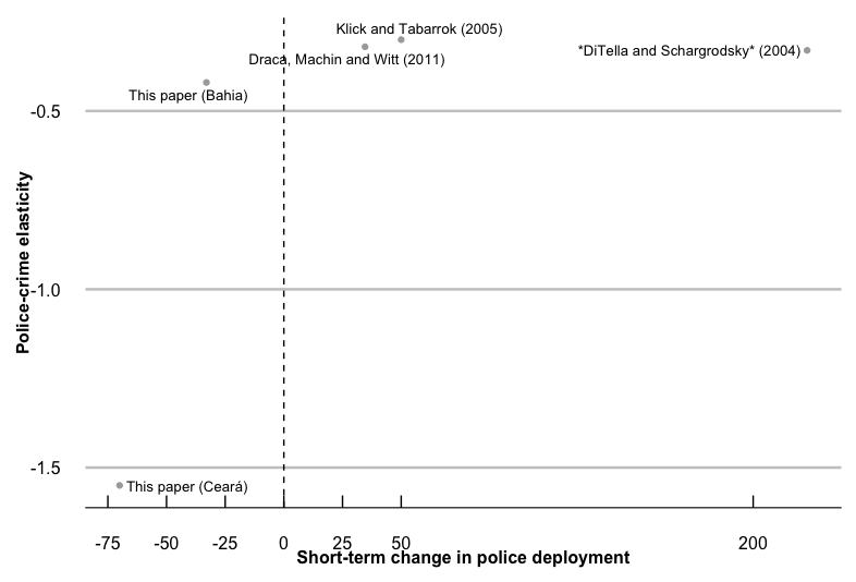 The paper explores Military Police strikes with different intensities and lengths in two of the most populated Brazilian states to identify the causal effect of a decrease in preventive policing on violence. I show that, in this setting, deterrence had an essential role in violent behavior: the evidence regarding the police-crime elasticity for murder is as strong as -1.56. Motor vehicle theft and robbery analysis suggest that criminals preferred violent methods to achieve their goals when the probability of being caught committing a crime was very low. The quasi-experimental literature might be underestimating the effect of police presence on violent crimes, given the nonlinearity associated with this relationship.